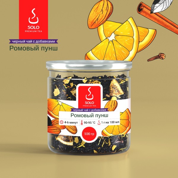 Чай черный Ромовый пунш SOLO, ПЭТ БАНКА, 100г