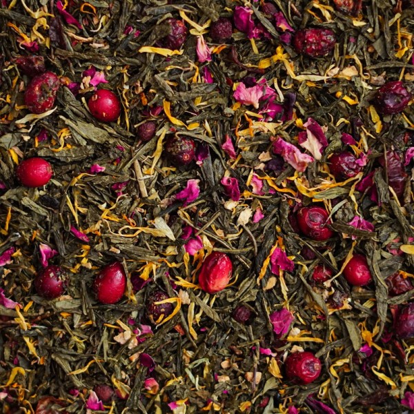 Зеленый крупнолистовой чай с ягодами аронии и черной смородины, мятой, сосновой почкой , листочками брусники, душицы, ольхи и листочками ежевики. Обладает ароматом лесных ягод.