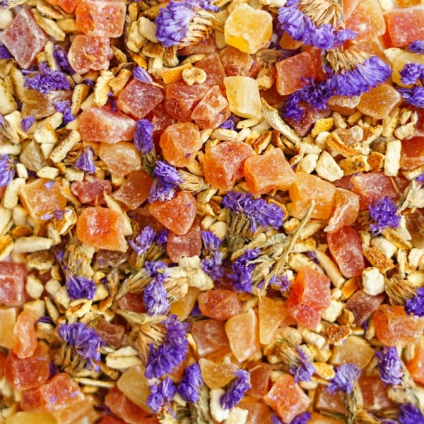 Состав: кубики папайи, цедра апельсина, цветки незабудки.