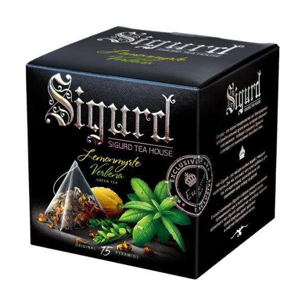 Чай зеленый SIGURD Лимонный мирт-вербена, 15 пирамидок в саше-конверте по 2 г