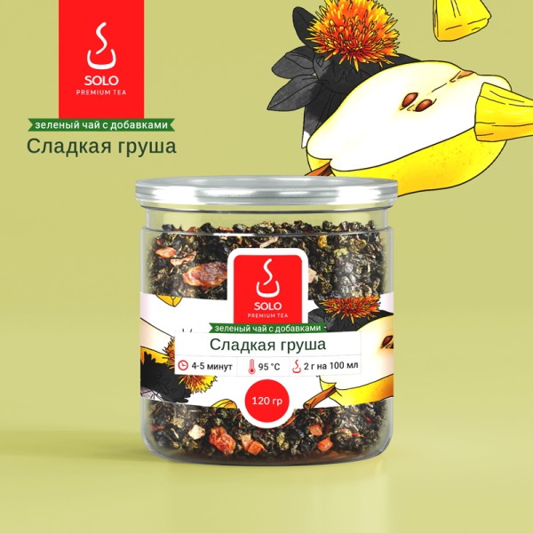 Чай зеленый Сладкая груша SOLO, ПЭТ БАНКА, 120г
