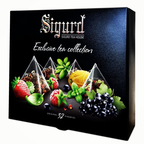 Чайное ассорти SIGURD 4 вкуса (Малина-мята, Клубника-базилик, Лимонный мирт, Смородина-мята) 32 пирамидки по 2 гр