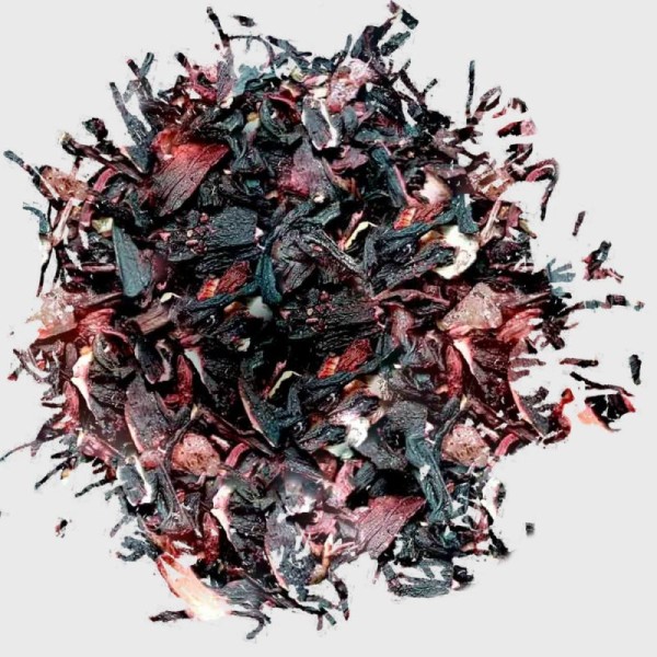 Один из самых вкусных купажей цветов каркадэ в основе с кусочками фруктов и ягод. Аромат чая долгий, сладко-свежий, с сильными ягодными нотами. Раскрываясь, он приобретает более насыщенные сладкие оттенки южных душистых цветов, а также легкие дынные нотки. Вкус свежий, острый, маслянистый, с нотами яблок и других фруктов, с цветочно-ванильным послевкусием. Цвет настоя –темно-рубинового цвета, плотный. Чай дает состояние внутреннего подъема, укрепляет иммунитет, отличное профилактическое средство от простуд и гриппа.