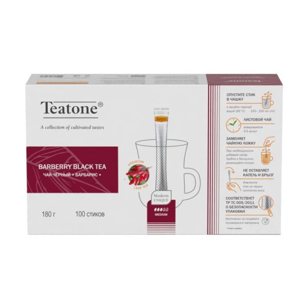Черный чай с ароматом барбариса в стиках для разовой заварки TEATONE 100 стиков по 1,8г