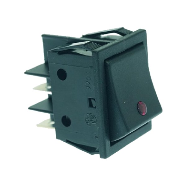 Двухполюсный выключатель черный кр.светод. 16A 250В 22x30 мм