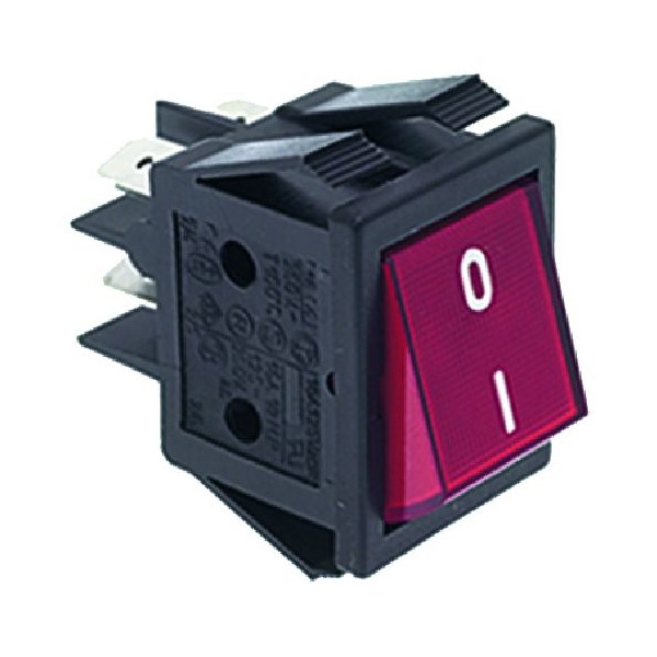Двухполюсный выключатель красный 16A 250В 22x30 мм