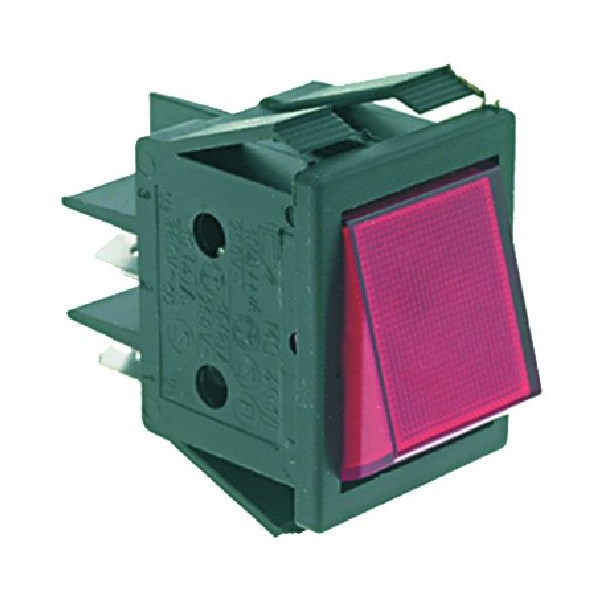 Двухполюсный выключатель красный 16А 250В 22x30 мм
