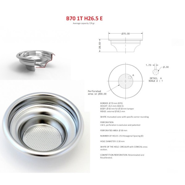 Фильтр IMS 1-порционный (корзинка для кофе в холдер) B70 1T H26,5 E 10-12 гр
