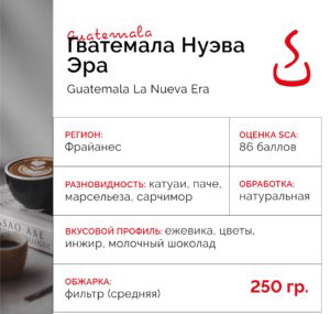 Кооператив Ла Нуэва Эра находится в деревне Джумайтепеке, недалеко от города Нуэва-Санта-Роса. Местность, где находится кооператив, находится у подножия вулкана Джумайтепеке, который является частью цепочки вулканов в этом районе, хотя и не очень активен. В Nueva Era есть две пристройки: одна для мытого кофе, а другая для натурального. Руководителем является Марлон Перес, который руководит процессами вместе с законным представителем Доном Ронмеро. Тем не менее, кооператив вовлекает всех своих 32 производителей в процессы принятия решений, таких как образование, агрономия и производство. Производители-участники получают авансовый платеж за помощь в сборе урожая, а затем вторичный платеж, когда обработанный кофе поступает на склад. Обучение также проводится для всех производителей-членов, а техническая команда оказывает помощь. Кофе, Ла Нуэва натуральной обработки, выращивается исключительно на ферме Тололоче. Ферма принадлежит и управляется семьей из трех поколений: Джейми Санчес, его отцом Доном Фернандо и его сыном. Ферма имеет площадь 50 га. Для кофе натуральной обработки время пребывания на солнце зависит от высоты над уровнем моря. Сушка ягоды на бенефицио около 1000 м3 происходит около 10-12 дней, а те, которые находятся на большей высоте, могут рассчитывать на дополнительные 5 дней для достижения правильной сушки.