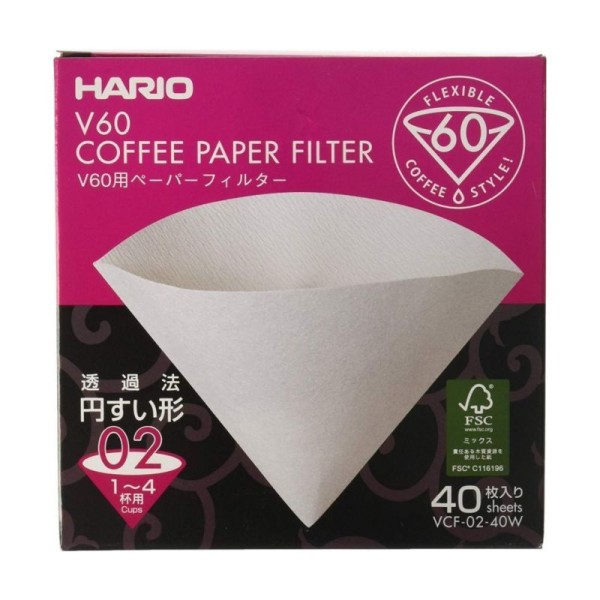 HARIO Фильтры бумажные для воронок V60 на 1-4 чашки VCF-02-40W, 40 шт