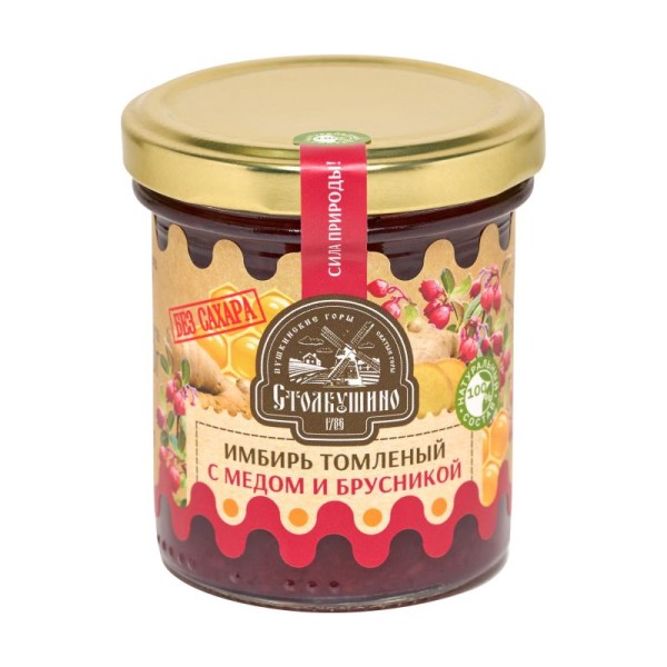 Имбирь томленый с медом и брусникой без сахара, "Столбушино", 160 гр