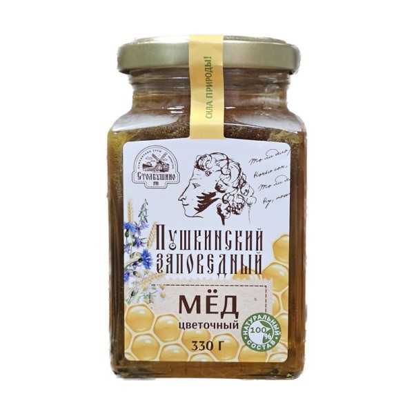 Мед натуральный цветочный "Пушкинский заповедный. Столбушино", стекло, 330 г