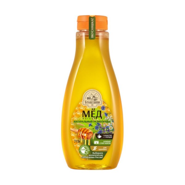 Мед натуральный разнотравье, пласт. бутылочка с клапаном, Столбушино, 715г