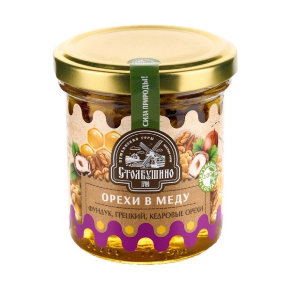 Состав: фундук, грецкий орех, кедровый орех, натуральный мёд.
