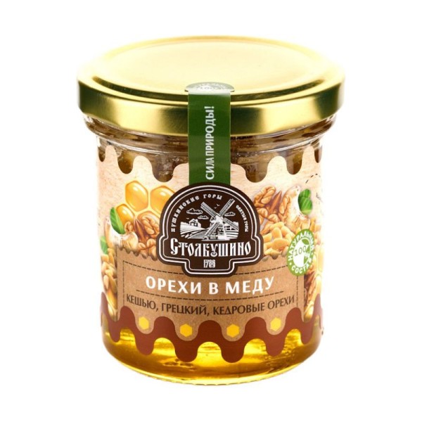 Состав: кешью, грецкий орех, кедровый орех, натуральный мёд.