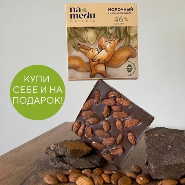 Шоколад на меду без сахара, с добавлением обжаренного миндаля.