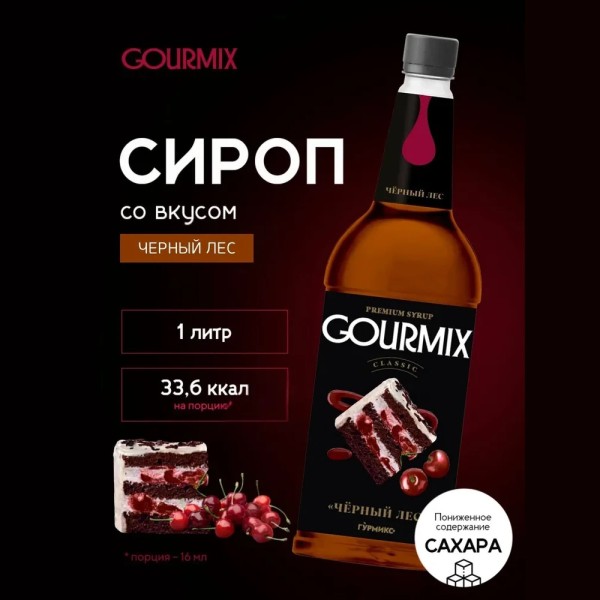 Яркий вкус сиропа Черный Лес вдохновлён знаменитым немецким тортом Шварцвальд. Сочетание насыщенного шоколадного бисквита, спелых ягод вишни и нежного сливочного крема.