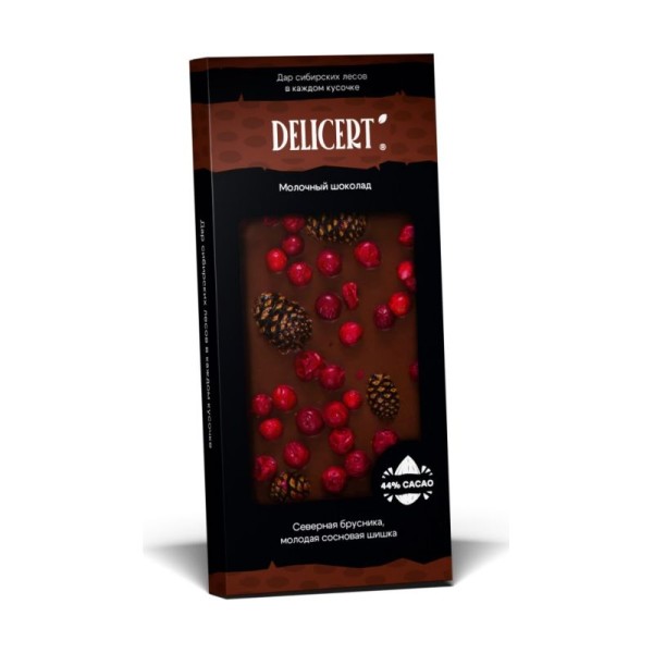 Таёжный шоколад Шишка сосновая и Брусника. Молочный 44% DELICERT, 75 г