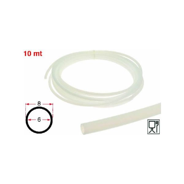 PTFE 8/6 - трубопровод из фторопласта с внешним диаметром 8 мм, внутренним - 6 мм, бело-молочного цвета.