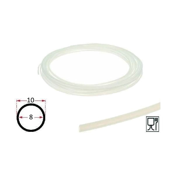 PTFE 10/8 - трубопровод из фторопласта с внешним диаметром 10 мм, внутренним - 8 мм, бело-молочного цвета.