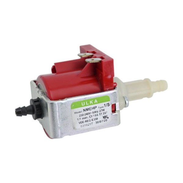 Насос вибрационный ULKA Model:NMEHP Type:1/S 230-240В 50Гц 27Вт предназначен для инсталляции в кофемашинах, пылесосах, парогенераторах и других бытовых приборах.